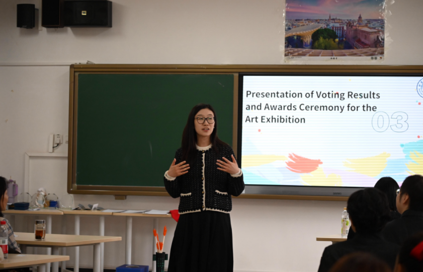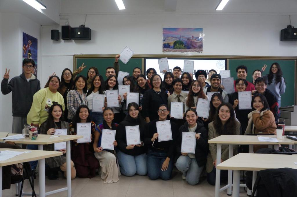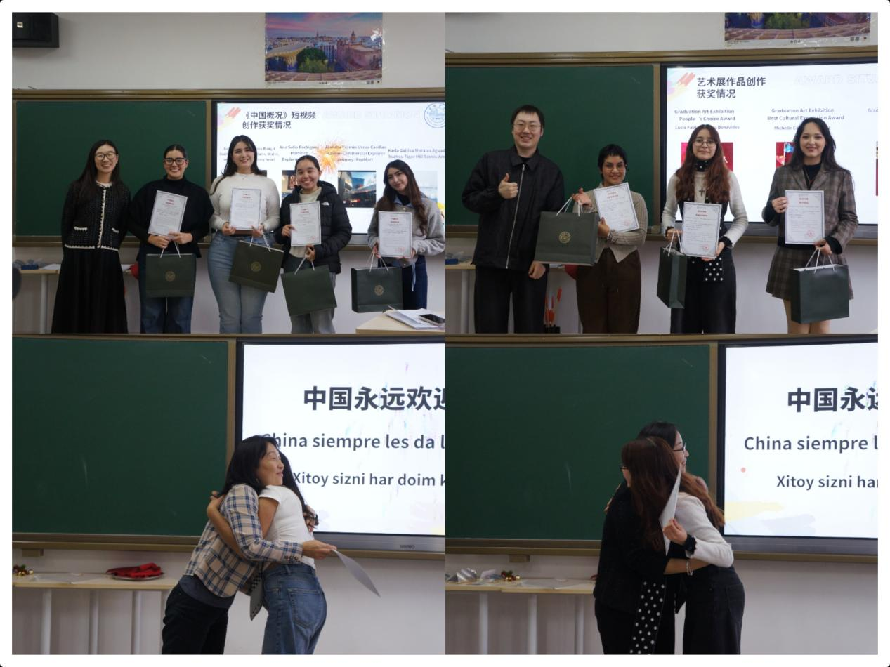 在结业仪式上,两位留学生代表依次上台发言,深情回顾了在北城学习期间令人难忘的历程以及所获得的丰厚收获。来自墨西哥的学生代表 Ulises 生动讲述了自己从零基础开始,到如今能够自信运用汉语进行交流和表达的巨大进步,同时分享了在语言学习和文化融入过程中的真切感悟。乌兹别克斯坦学生代表 Nafisa 结合课程中丰富的文化体验和社会实践,表达了通过亲身参与加深对中华文化理解与认同的由衷喜悦,并对学校提供的优质学习平台以及教师们的悉心指导致以诚挚感谢。